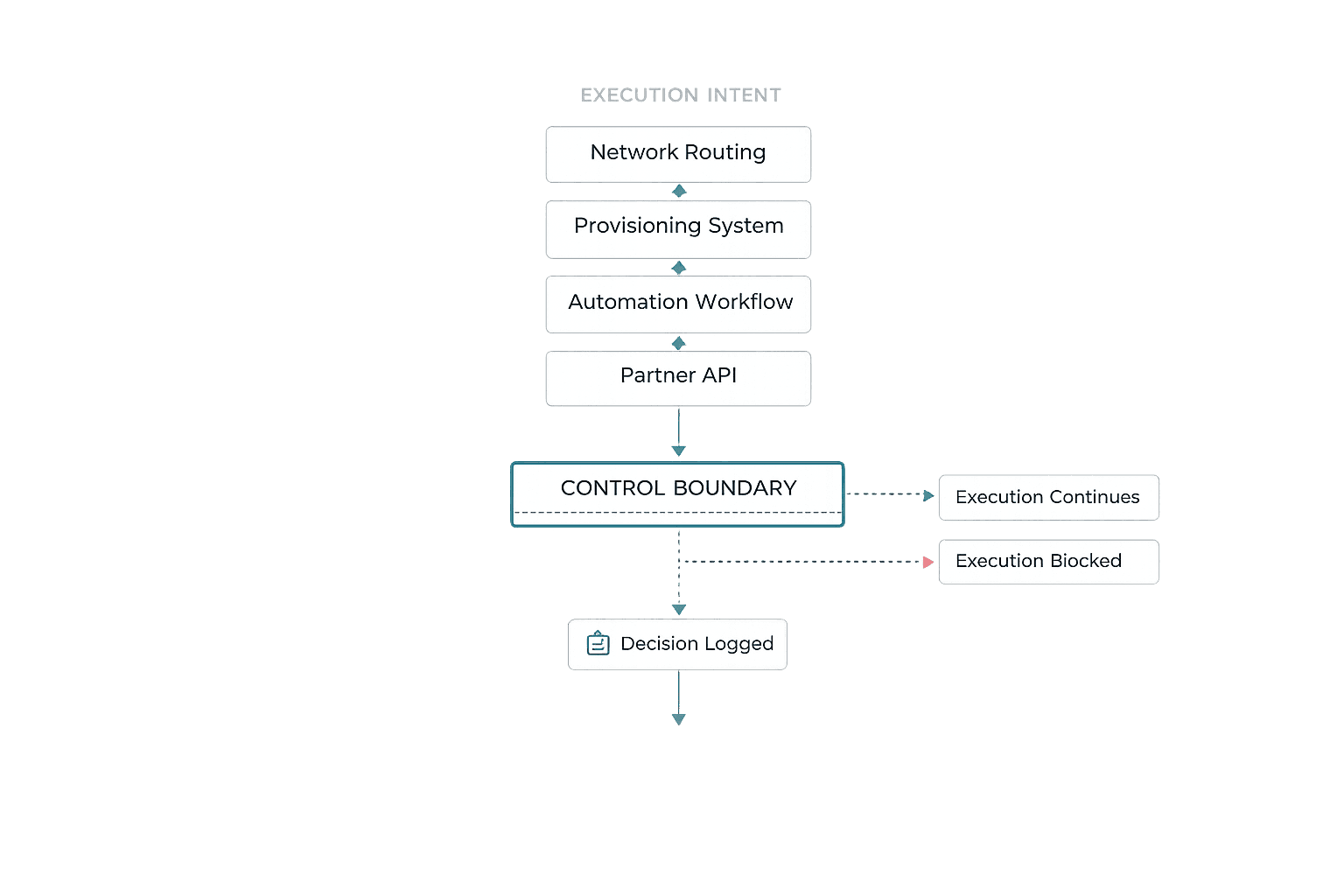 A control boundary separates service validity from execution capability.